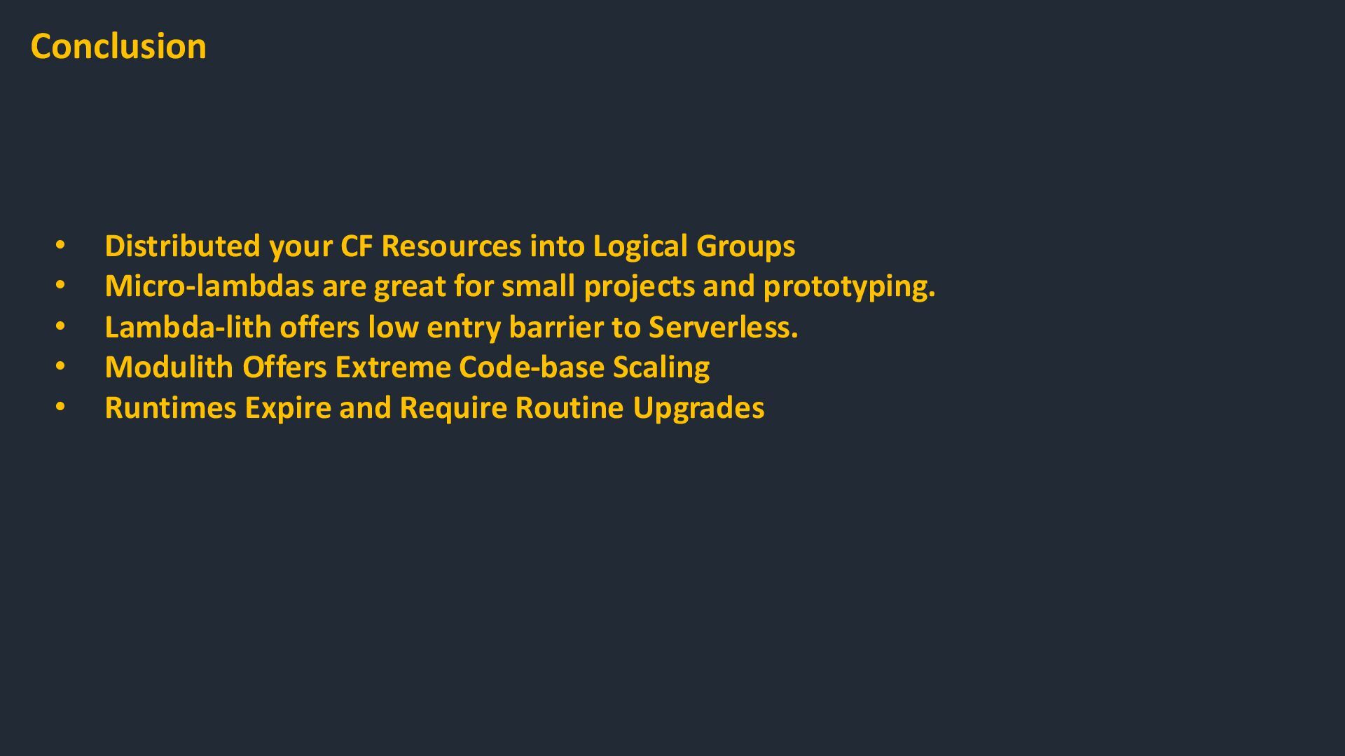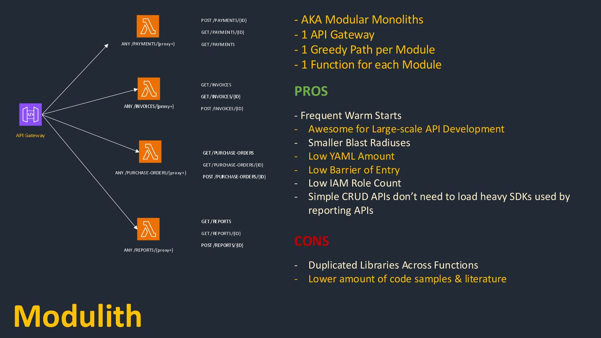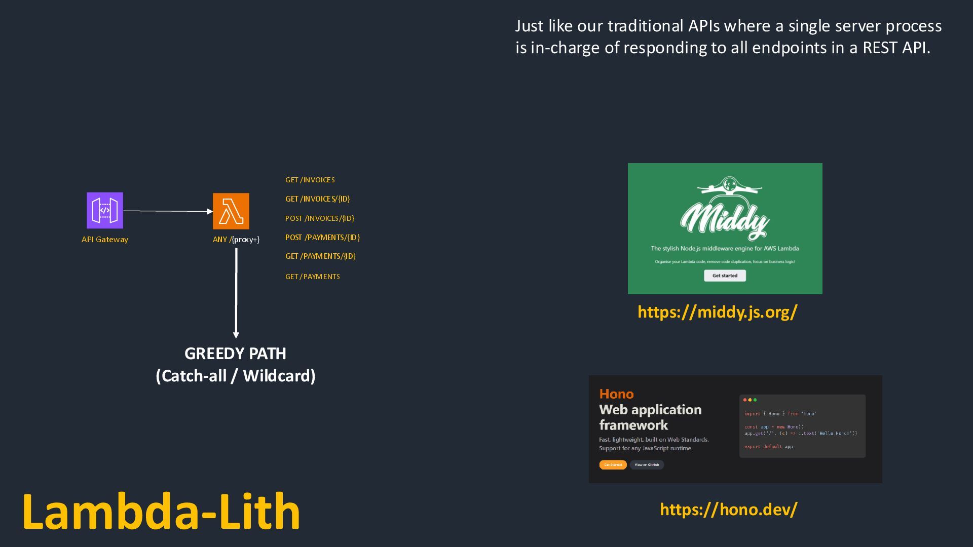 Discover practical solutions to real-world serverless constraints faced by engineering teams that builds API projects using popular patterns such as Micro-Lambdas, Lambdaliths and Moduliths. This presentation explores creative workarounds for common and rarely discussed limitations.
