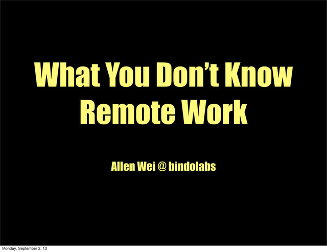 What You Don’t Know Remote Work Allen Wei @ bindolabs
