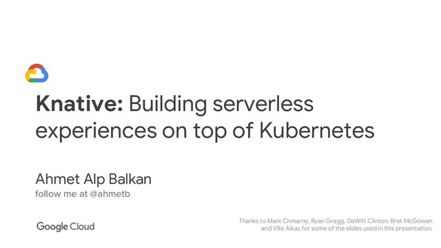 Balkan follow me at @ahmetb Thanks to Mark Chmarny, Ryan Gregg, DeWitt Clinton, Bret McGowen and Ville Aikas for some of the slides used in this presentation.