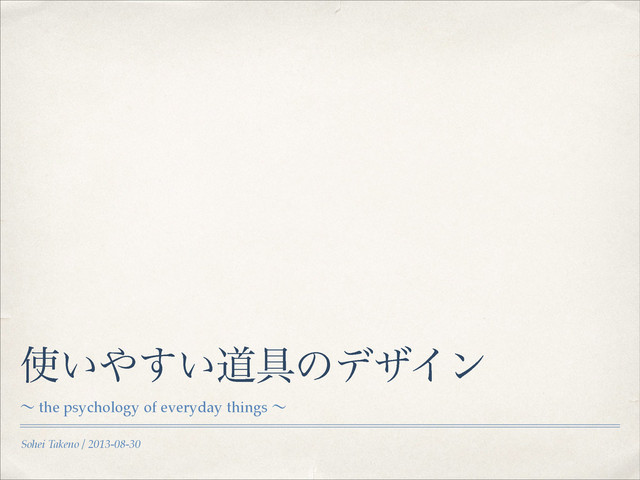 Sohei Takeno / 2013-08-30 ͍͍͢ಓ۩ͷσβΠϯ ʙ the psychology of everyday