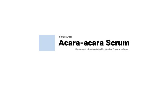 Goals, merencanakan Sprint Backlog • Daily Scrum: perencanaan kolaboratif satu hari kerja • Sprint Review: mengumpulkan feedback untuk Sprint Planning, merencanakan kembali arahan bersama Stakeholders • Sprint Retrospective: rencana peningkatan