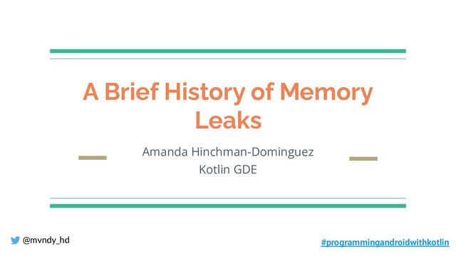 Memory and threading in is some of the most difficult and complicated topics in Android. This talk introduces what memory leaks are, and why they’re so hard to find. Taken from excerpts of the newly published O'Reilly book "Programming Android with Kotlin: Achieving Structured Concurrency with Coroutines", this talk take a light-hearted approach at some of the colorful developments Android has gone through the years. From “Why did AsyncTask get deprecated?” to resource leaks in background threads, we look at memory leaks in Android as we’ve uncovered them through the years. To understand quirks of memory leaks in Android, join us for some historical context, a little empathy, and a kinder view of open-source development.