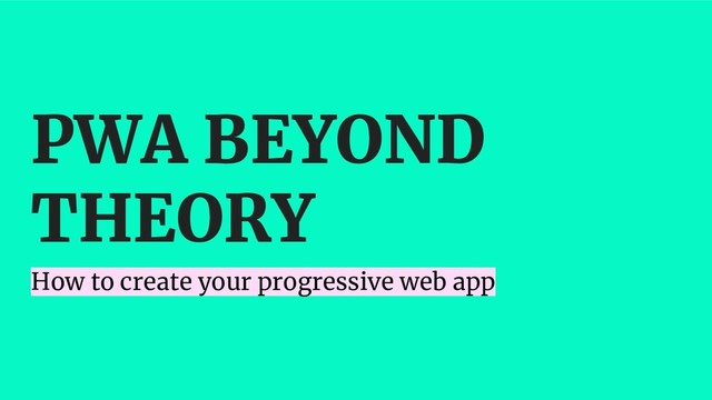 PWA BEYOND THEORY How to create your progressive web app