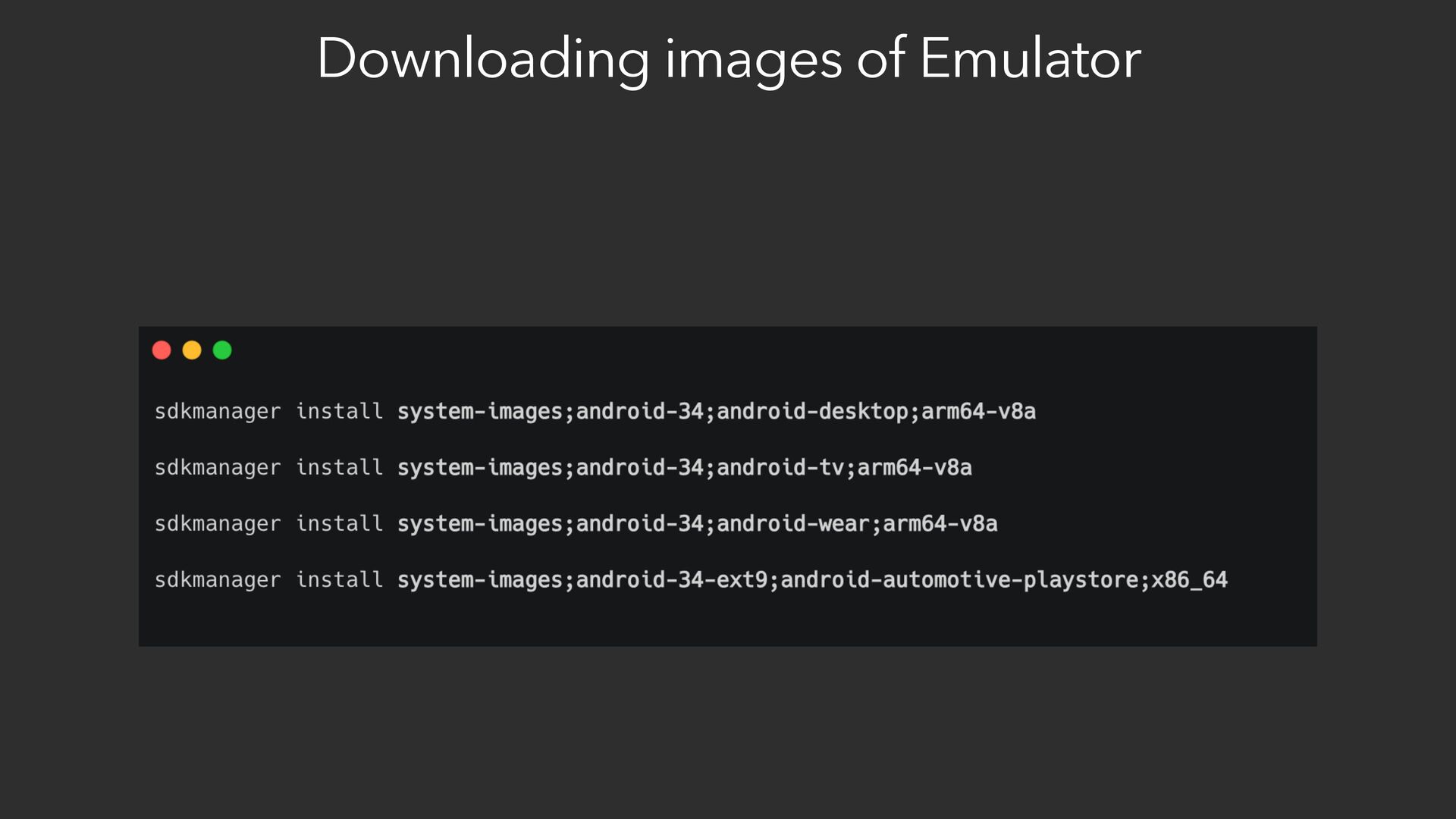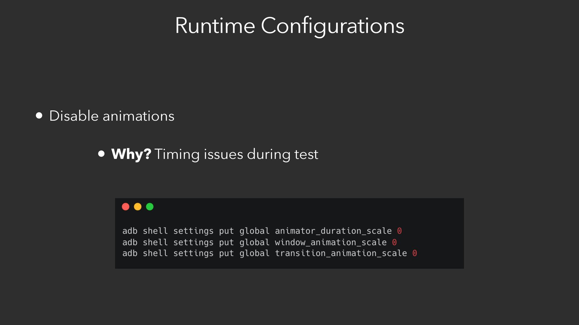 4. Different configurations for emulators before running tests.