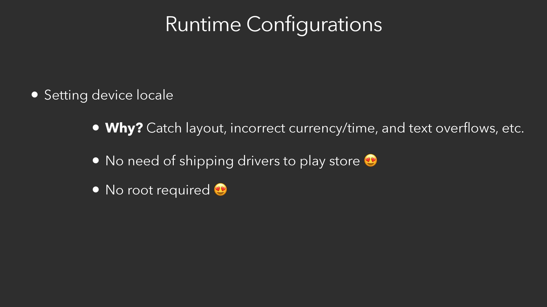 7. Runtime Configurations • Setting device locale • No need of