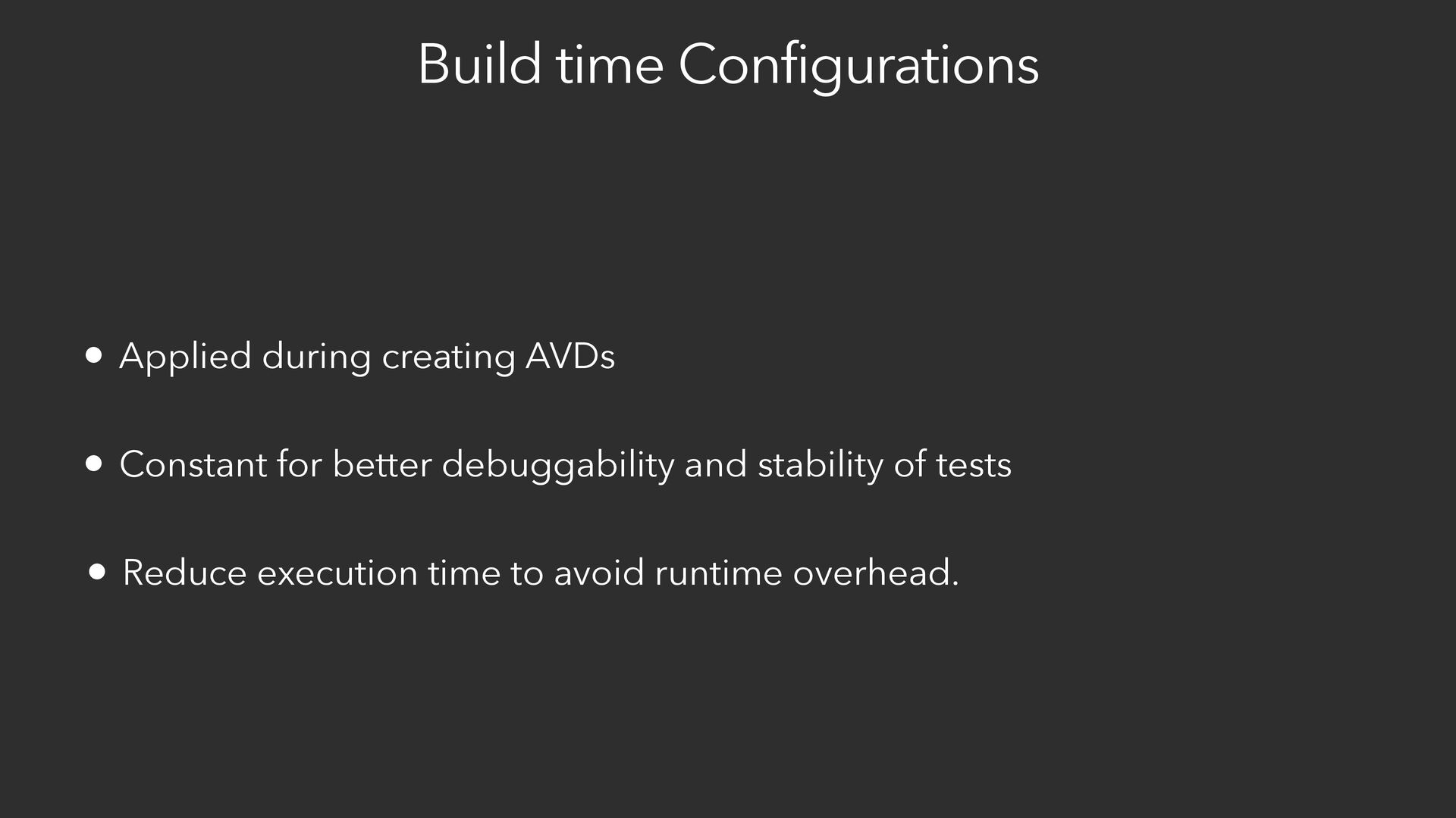 execution time to avoid runtime overhead. • Constant for better debuggability and stability of tests