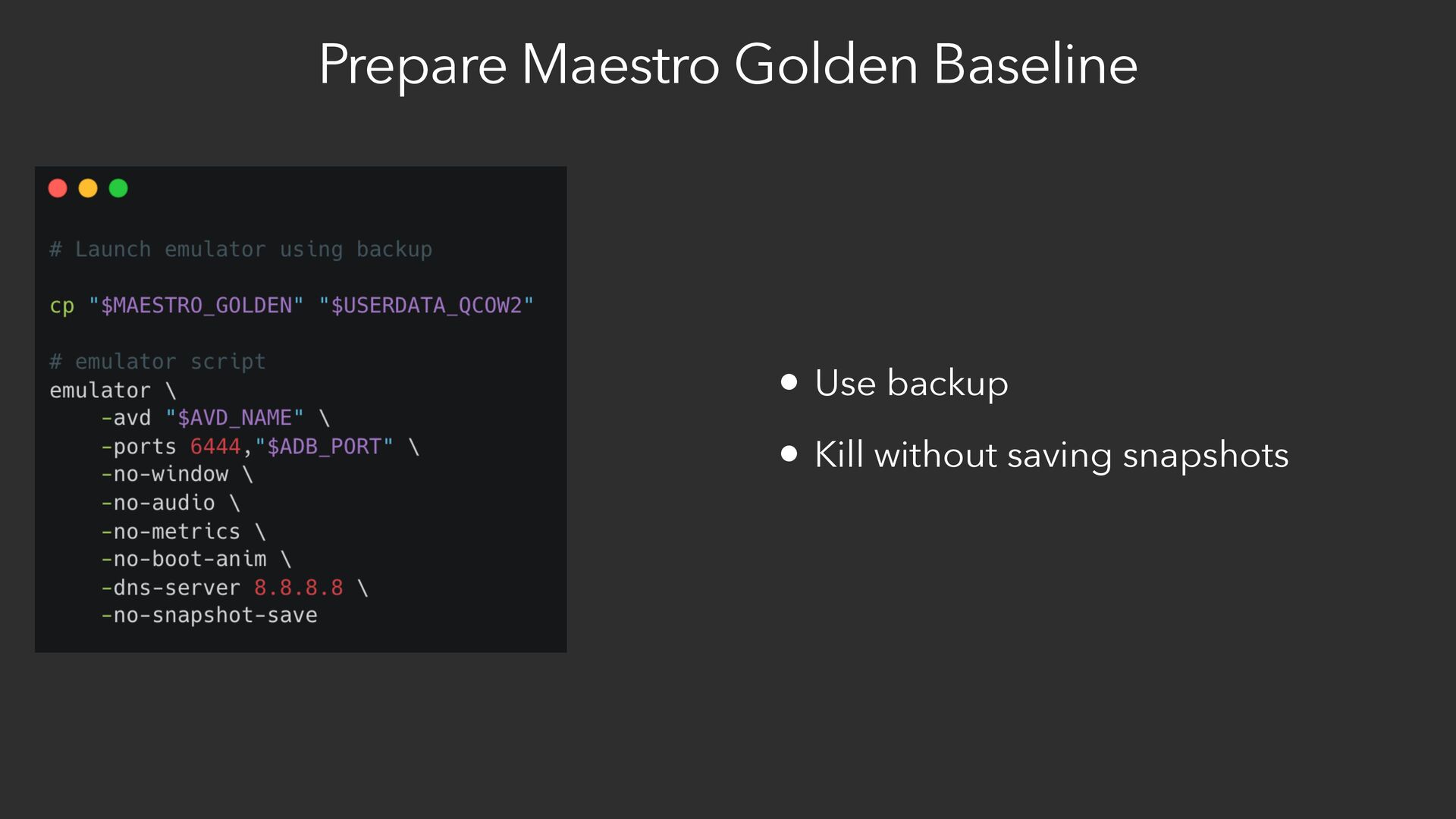This session demystifies production-grade emulator management for automated UI testing. Learn how we manage following: