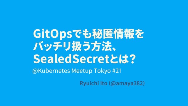 GitOpsで秘匿情報を扱う方法を紹介する資料です。SealedSecretというツールを中心に紹介しますが、それ以外のkamus, Hashicorp Vault, kubesealといった多くのツールも紹介します。 @Kubernetes Meetup Tokyo #21 - Cloud Native CI/CD