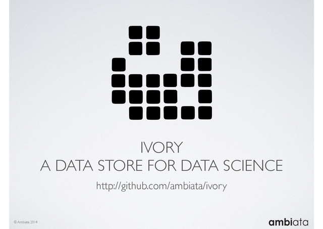 Eng Model train Score A typical workflow Multiple data sources: • Transaction logs • Database snapshots • Segmentation models • 3rd-party data © Ambiata 2014 Feature engineering: • Data source are joined • Instances are created • Features are engineered The cool stuff: • Models are built • Instances are scored