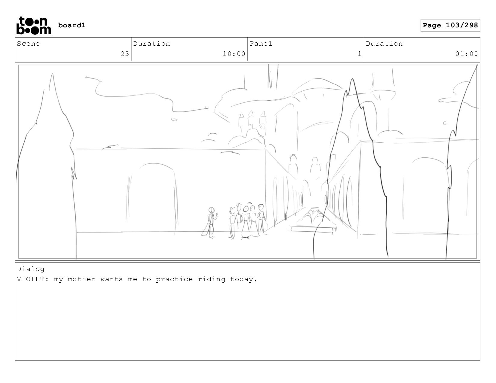 Scene 2 Duration 10:00 Panel 3 Duration 01:06 Dialog VIOLET: