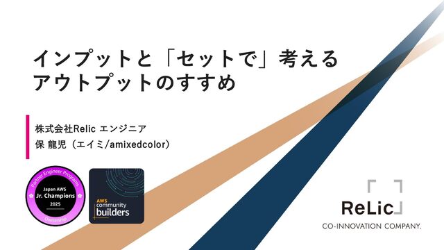 株式会社Relic エンジニア 保 龍児(エイミ/amixedcolor) インプットと「セットで」考える アウトプットのすすめ