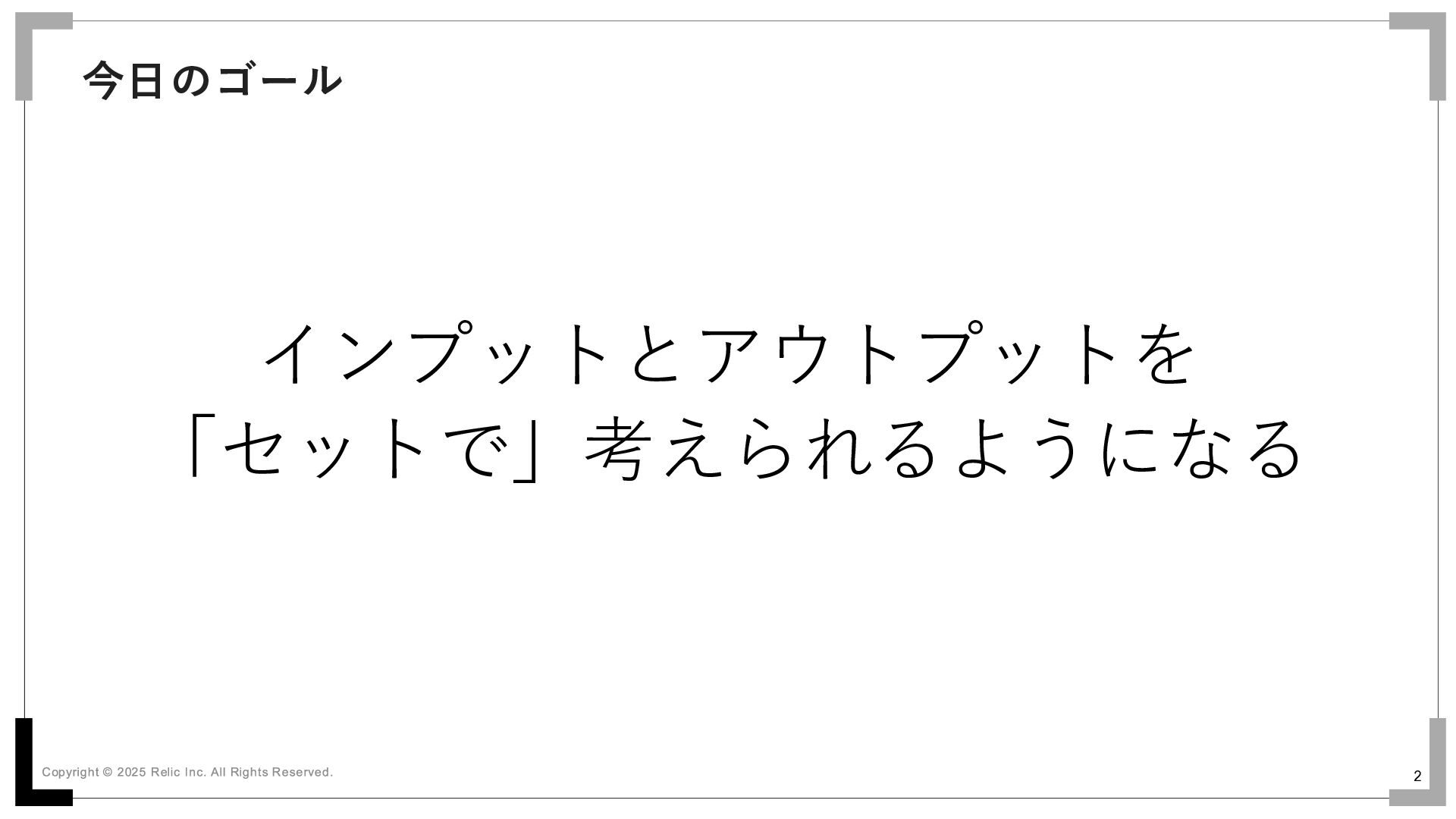 2 今日のゴール インプットとアウトプットを 「セットで」考えられるようになる