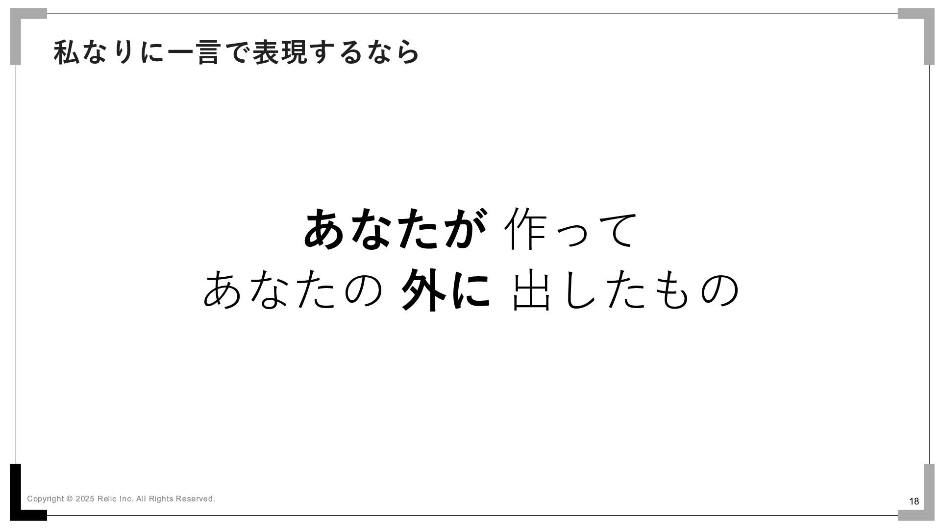 18 あなたが 作って あなたの 外に 出したもの 私なりに一言で表現するなら