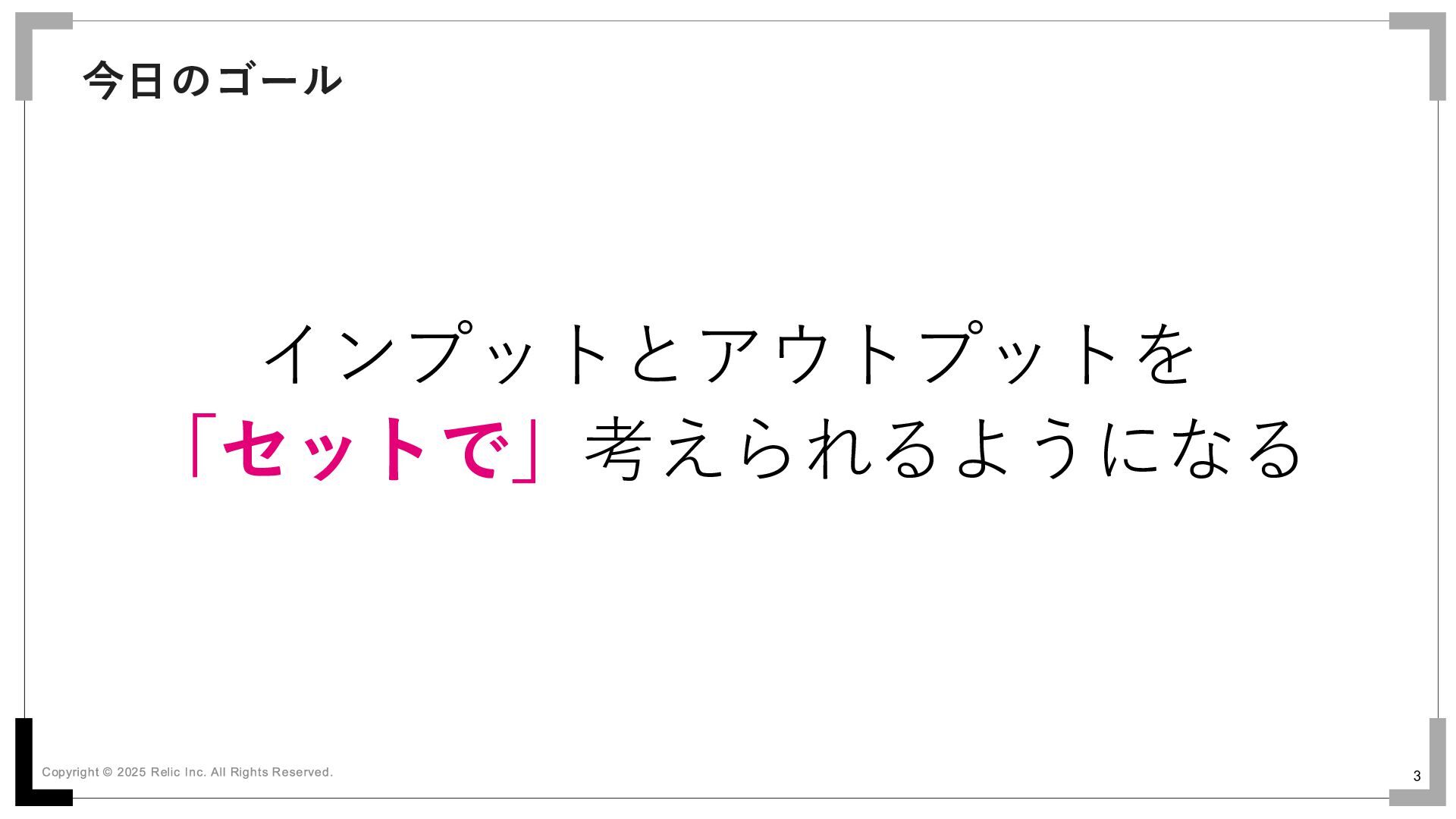 3 今日のゴール インプットとアウトプットを 「セットで」考えられるようになる