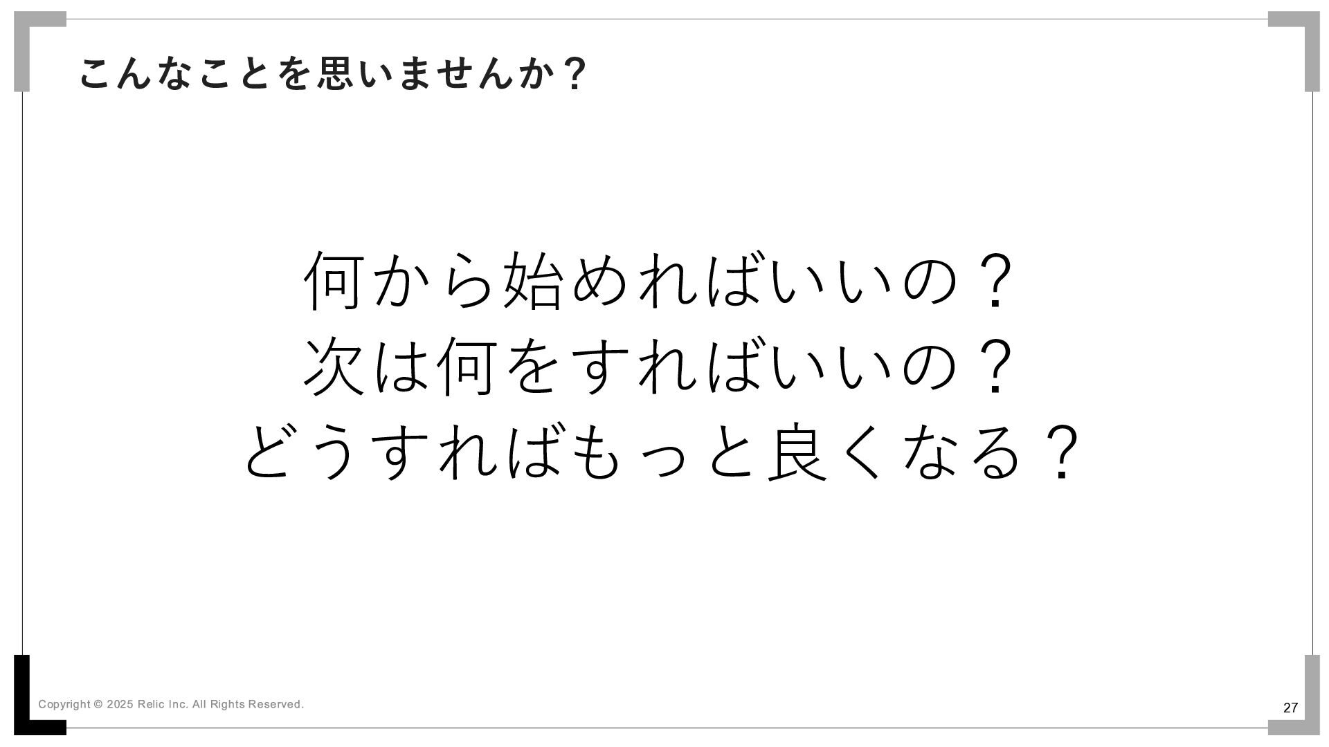27 何から始めればいいの? 次は何をすればいいの? どうすればもっと良くなる? こんなことを思いませんか?
