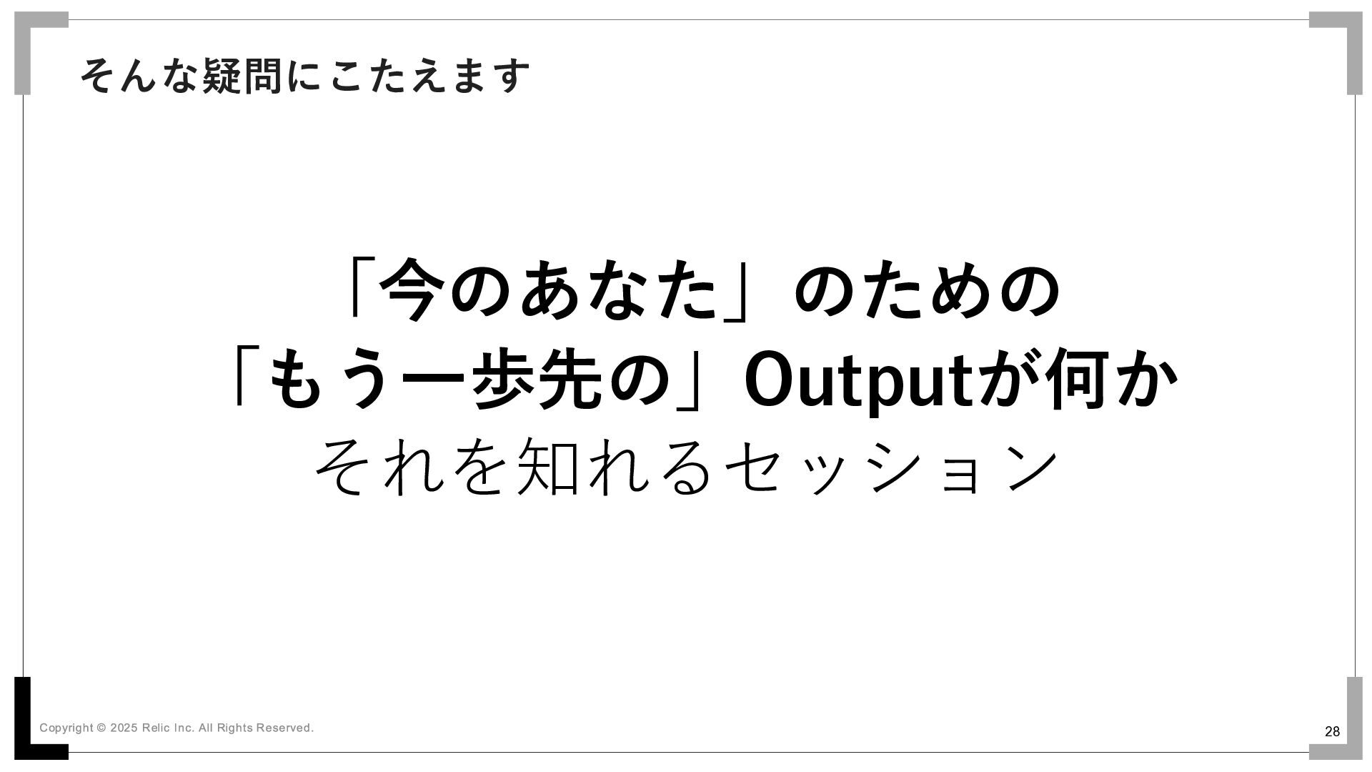 28 「今のあなた」のための 「もう一歩先の」Outputが何か それを知れるセッション そんな疑問にこたえます