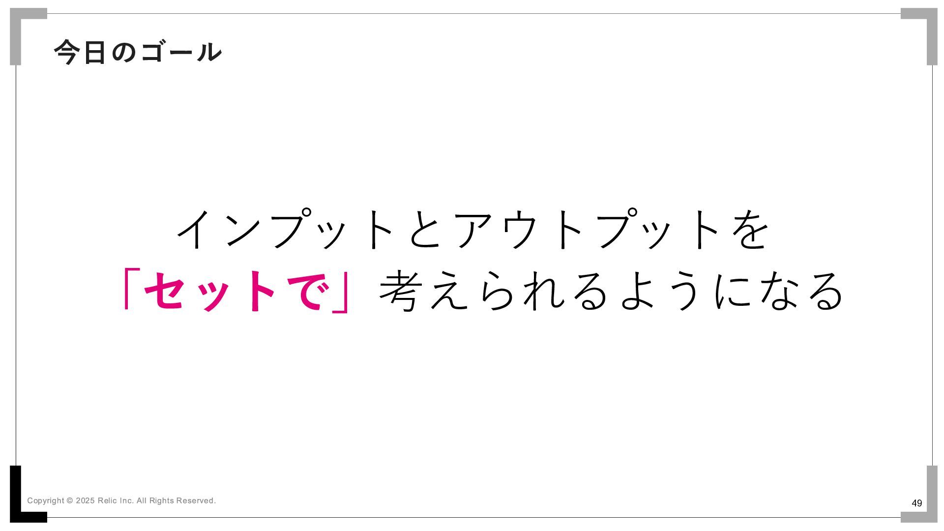 49 今日のゴール インプットとアウトプットを 「セットで」考えられるようになる