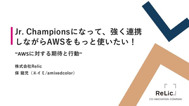 ◼︎当時の自己紹介 こんにちは!株式会社Relicのエンジニア、保 龍児もといエイミ/amxiedcolorです! AWS歴半年未満の初心者ですが、この度は思いの丈について元気よく語らせていただきます! よろしくお願いいたします!