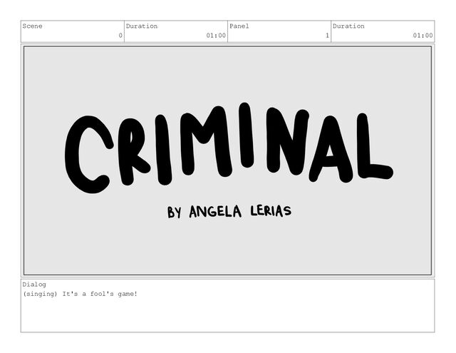 Scene 1 Duration 02:00 Panel 1 Duration 01:00 Dialog (singing)
