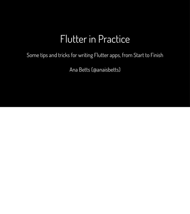 This talk will be using the lessons learned while writing Sirene (https://github.com/anaisbetts/sirene), a production open-source Flutter app in the App Store + Play Store as its motivating example. Come out and learn some helpful tips for writing a great app!