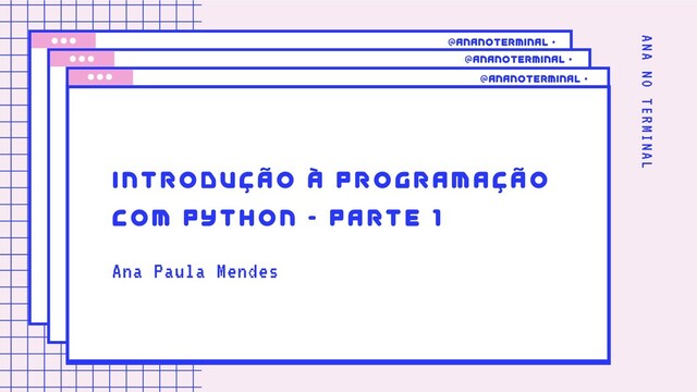 o d u ç ã o à p r o g r a m a ç ã o c o m P y t h o n - p a r t e 1 @ananoterminal • @ananoterminal • @ananoterminal •