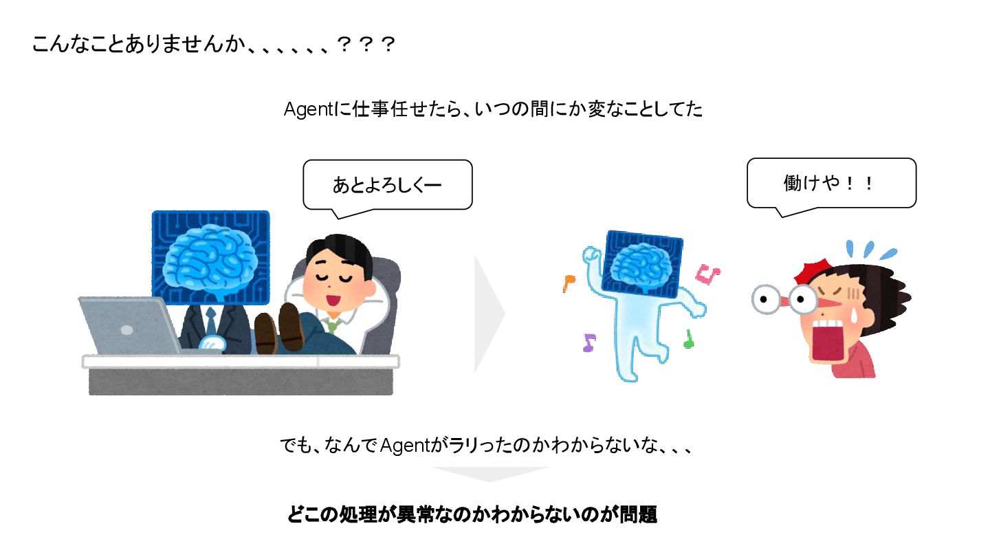 こんなことありませんか、、、、、、??? Agentに仕事任せたら、いつの間にか変なことしてた あとよろしくー 働けや!! でも、なんでAgentがラリったのかわからないな、、、 どこの処理が異常なのかわからないのが問題