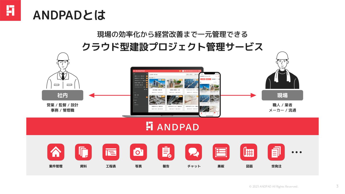 3. © 2025 ANDPAD All Rights Reserved. ANDPADとは 社内 現場 営業
