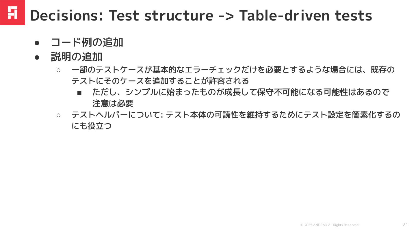 13. © 2025 ANDPAD All Rights Reserved. Decisions: Test structure ->