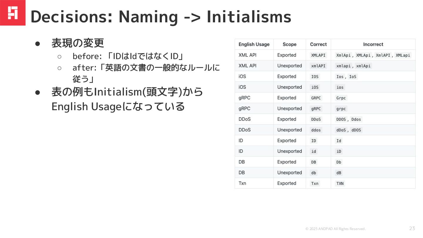 16. © 2025 ANDPAD All Rights Reserved. Decisions: Naming -> Initialisms