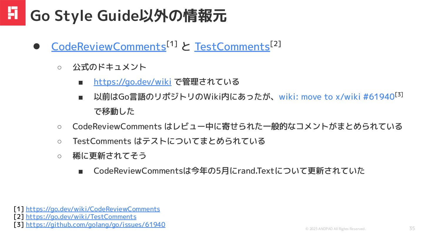 31. © 2025 ANDPAD All Rights Reserved. Go Style Guide以外の情報元 •
