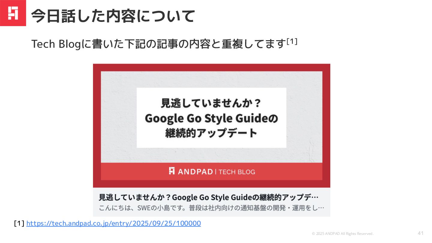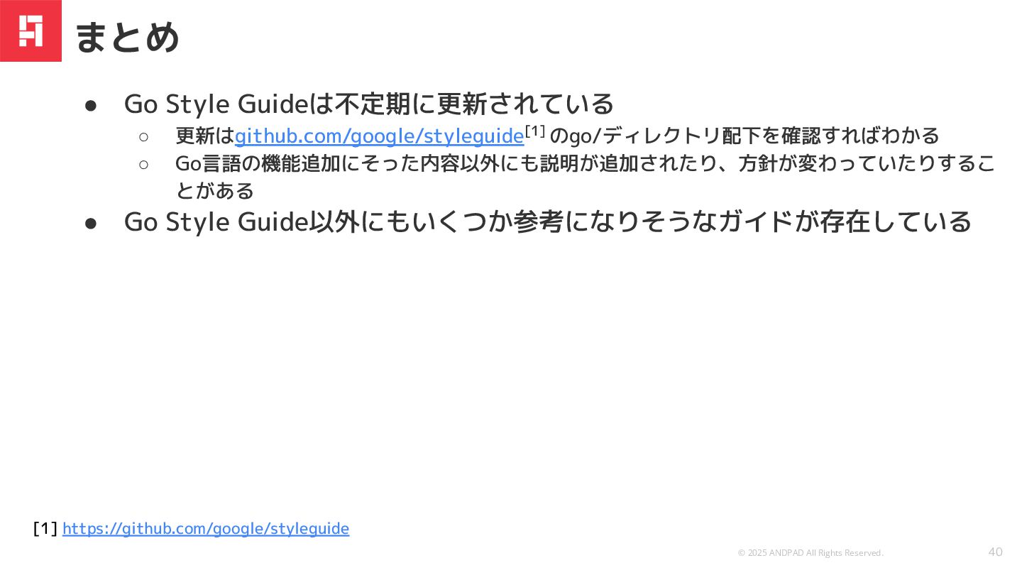 32. © 2025 ANDPAD All Rights Reserved. まとめ 40 • Go