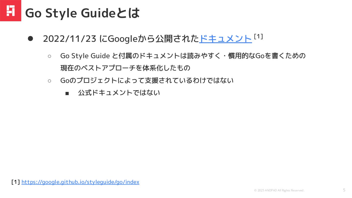 5. © 2025 ANDPAD All Rights Reserved. Go Style Guideとは •
