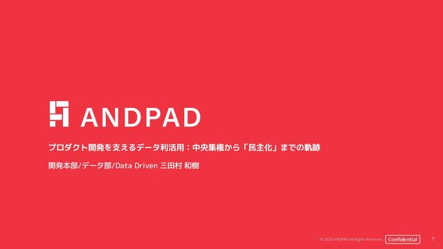 © 2025 ANDPAD All Rights Reserved. Confidential プロダクト開発を支えるデータ利活用:中央集権から「民主化」までの軌跡 開発本部/データ部/Data Driven