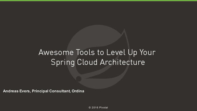 During this talk you will see a demo of an integrated platform based on Spring Cloud, including tools like Spring Cloud Contract, wiremock, saboteur, ELK, Spinnaker, Spring Boot Admin and more. One of these tools is a dashboard for visualising Pivotal’s Spring Cloud microservice architecture, which has recently been open sourced.