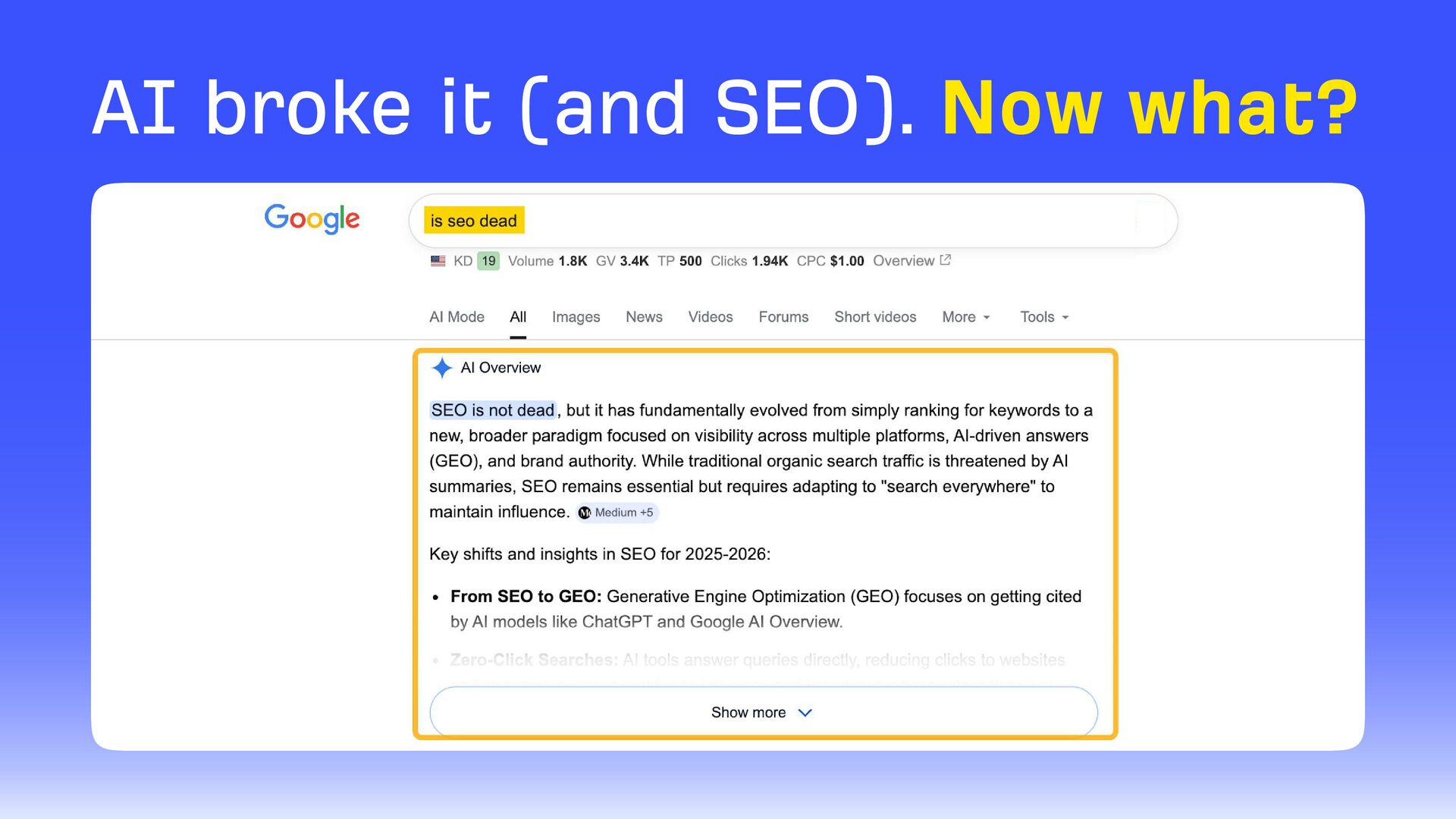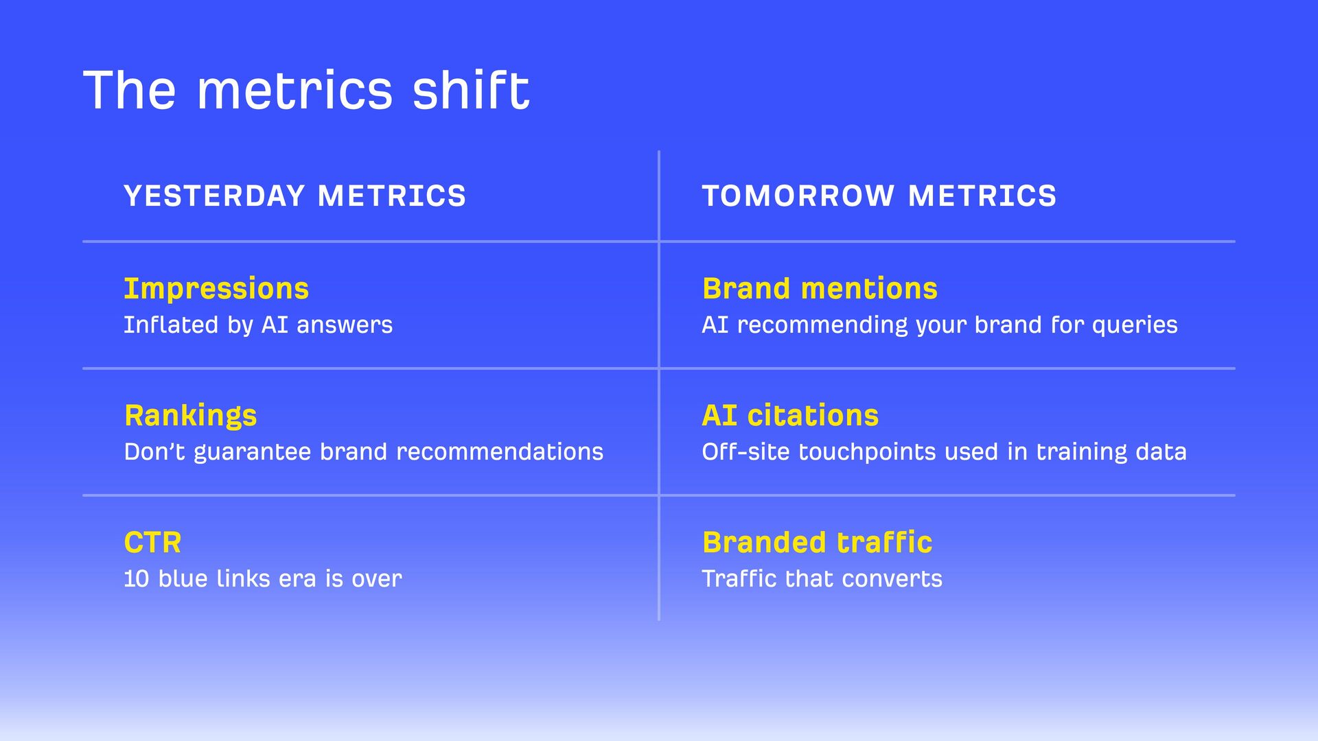The presentation breaks down what has actually changed (and what hasn't) in SEO, so you can focus your energy on correctly measuring AI search.