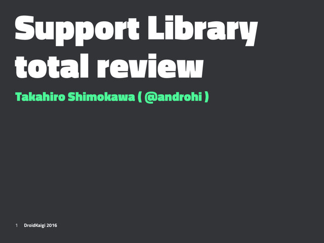 higher • With the biggest API set in Support Library • Without resouces dependencies { compile 'com.android.support:support-v4:23.1.1' } 15 DroidKaigi 2016