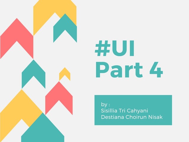 Materi tentang pengenalan UI yang ke 4 ini disampaikan oleh Sisila Tru Cahyani dan Destiana Choirun Nisak dalam Meetup Android Dev Surabaya ke 7.