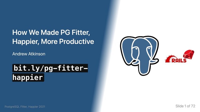This talk will walk through a series of improvements made to our PostgreSQL 10 databases to improve performance, increase operational efficiency, and tune parameters. Some of the techniques were to add monitoring, remove and replace indexes, remove bloat, and split tables into a new database without application downtime.