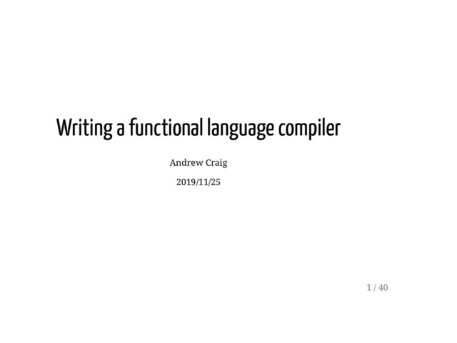 28. Code https://github.com/andycraig/functional-compiler Resources Compiler Explorer: https://godbolt.org/ Closure conversion: How to