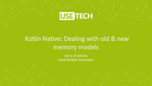 in «Usetech software» . • Native mobile development, iOS and Android (Swift/Objective-C, Kotlin/Java) cross-platform mobile development (Xamarin, Kotlin multiplatform) • Leading mobile team. Mentorship • Public speaking (Mobius Moscow 2020, AppsLive 2020) • Tutor in Otus (iOS advanced) • Writing articles about mobile development (especially iOS and KMM ) • Women Techmaker Ambassador since 2021 2