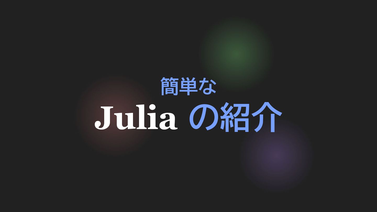 MATLAB のような直感的な数式表現もできる • Python のように総合的なプログラミングができて、 R のように統計処理も得意で、 Perl のように文字列処理もできて、 MATLAB のように線形代数もできて、 shell のように複数のプログラムを組み合わせることもできる • 超初心者にも習得は容易でありながら、 ハッカーの満足にも応えられる • インタラクティブな動作環境もあって、コンパイルもできる (Why We Created Julia から抜粋・私訳)