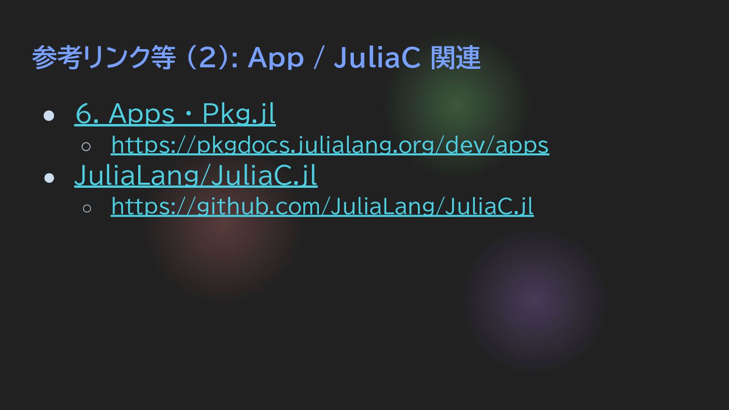 参考リンク等 (2): App / JuliaC 関連 • 6. Apps ·