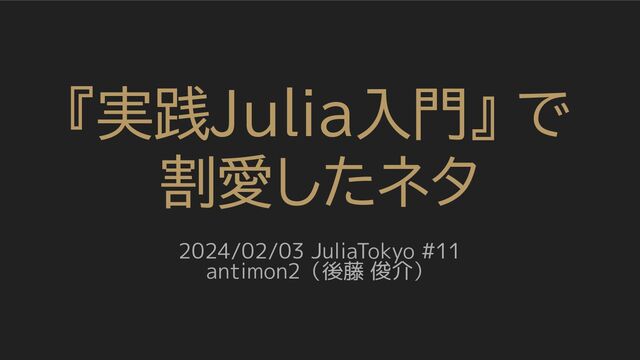『実践Julia入門』 で 割愛したネタ 2024/02/03 JuliaTokyo #11 antimon2(後藤 俊介)