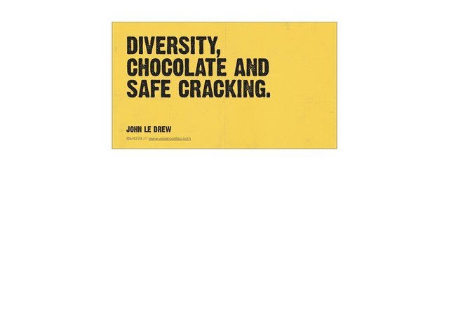 For full details of the session see https://www.wisenoodles.com/talks/diversity-chocolate-and-safe-cracking