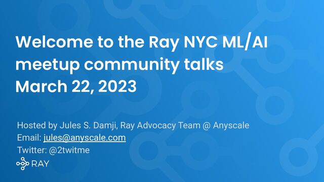 Welcome to the Ray NYC ML/AI meetup community talks March