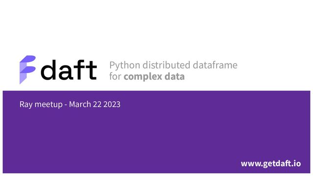 Talk 2 (30-35 mins) : Daft: The Ray-native Python dataframe for Complex Data - Jay Chia, Eventual