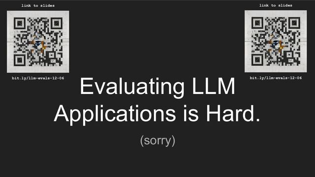 A specter is haunting generative AI: the specter of evaluation. In a rush of excitement at the new capabilities provided by open and proprietary foundation models, it seems everyone from homebrew hackers to engineering teams at NASDAQ companies has shipped products and features based on those capabilities. But how do we know whether those products and features are good? And how do we know whether our changes make them better? I will share some case studies and experiences on just how hard this problem is – from the engineering, product, and business perspectives – and a bit about what is to be done.