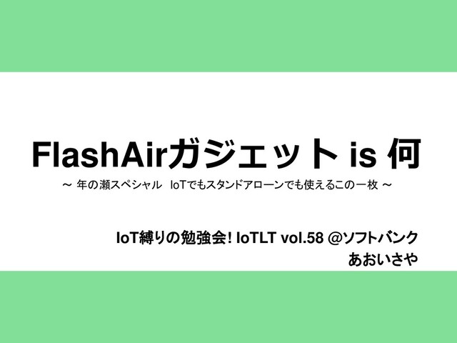 FlashAirはWi-Fi機能とマイコンを内蔵したSDカードです。IoT向けの使い方が開示されており、カード端子をGPIOやSPI等に切り替えて外部部品の制御を行うことができます。