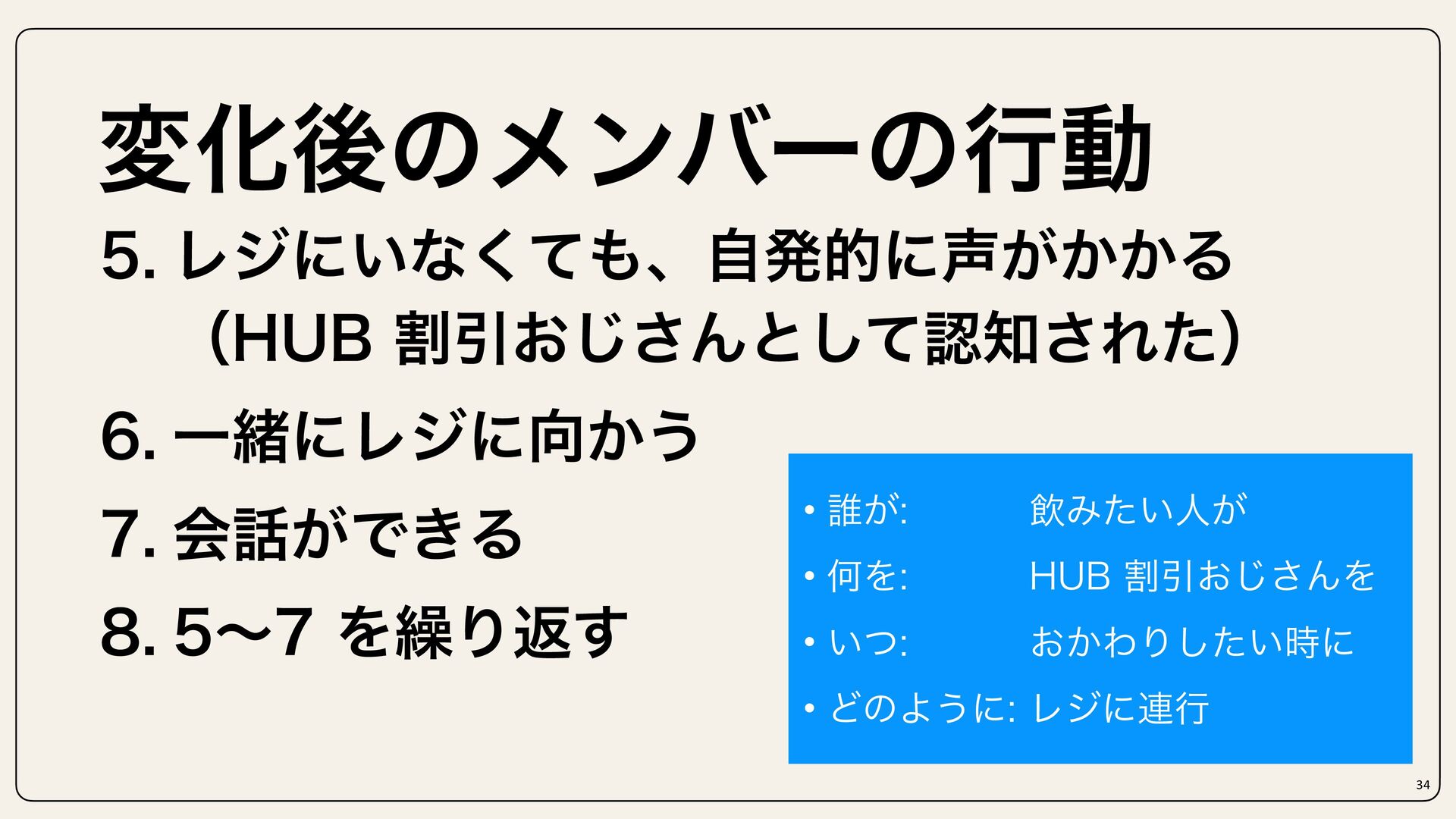 5.  Ϩδʹ͍ͳͯ͘΋ɺࣗൃతʹ੠͕͔͔Δ ʢ)6#ׂҾ͓͡͞Μͱͯ͠ೝ஌͞Εͨʣ  ҰॹʹϨδʹ޲͔͏  ձ࿩͕Ͱ͖Δ  ʙΛ܁Γฦ͢ 34