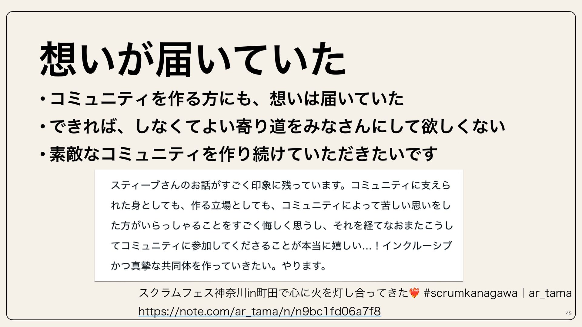 6. • ίϛϡχςΟΛ࡞Δํʹ΋ɺ૝͍͸ಧ͍͍ͯͨ • Ͱ͖Ε͹ɺ͠ͳͯ͘Α͍دΓಓΛΈͳ͞Μʹͯ͠ཉ͘͠ͳ͍ • ૉఢͳίϛϡχςΟΛ࡞Γଓ͚͍͖͍ͯͨͩͨͰ͢